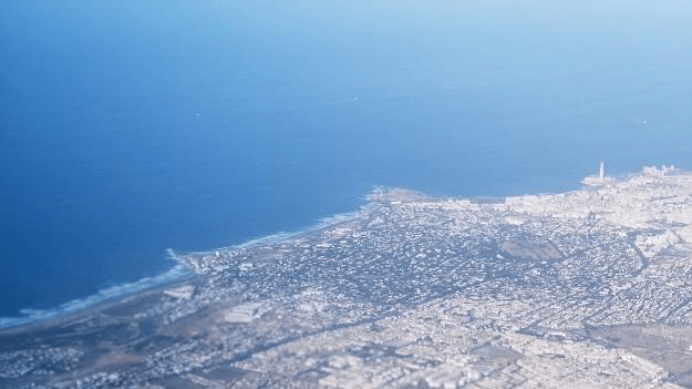 We flew west over the coast and saw our neighborhood where we’d lived for the past two weeks. You can see the big mosque on the water with the tall minaret that we jogged past on our morning runs.