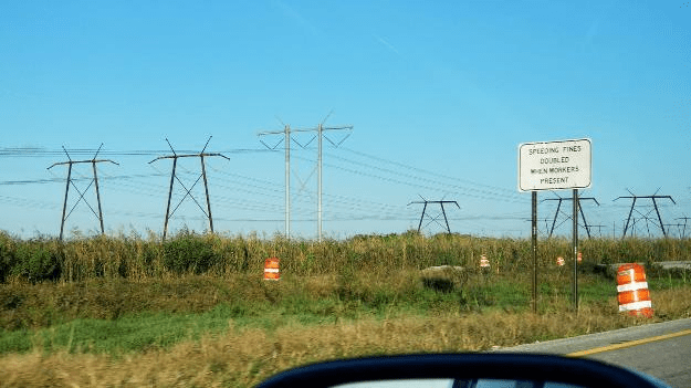 There were lots of straight roads and power transmission towers.