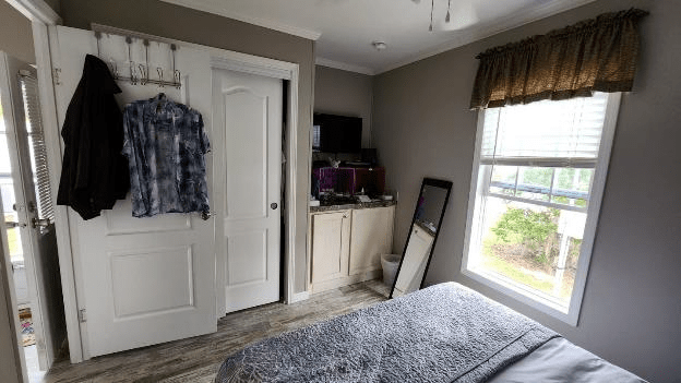 The bedroom is also functional but doesn’t have a lot of storage space.
