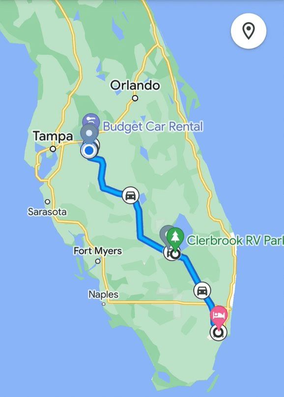 This was the final leg of our 5-month travel experience! We left Mulberry, FL in the morning and drove to our storage unit in Sarasota to get a few things then checked into our manufactured home around 3:30 PM. It was an easy drive from Mulberry to Bradenton.
