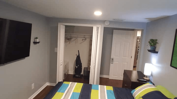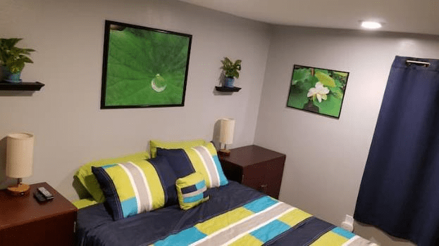 The bedroom is roomy.