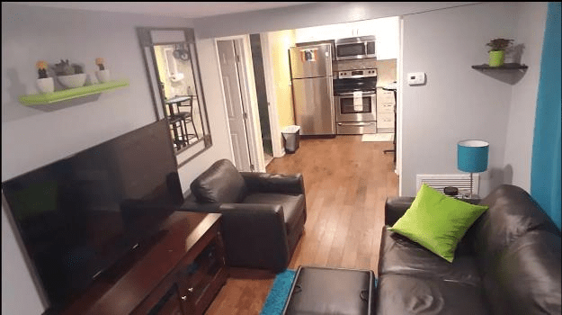 From the front door you walk into the living room and then straight into the kitchen.