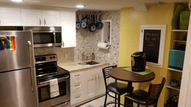 The kitchen has full-sized appliances, which we like.