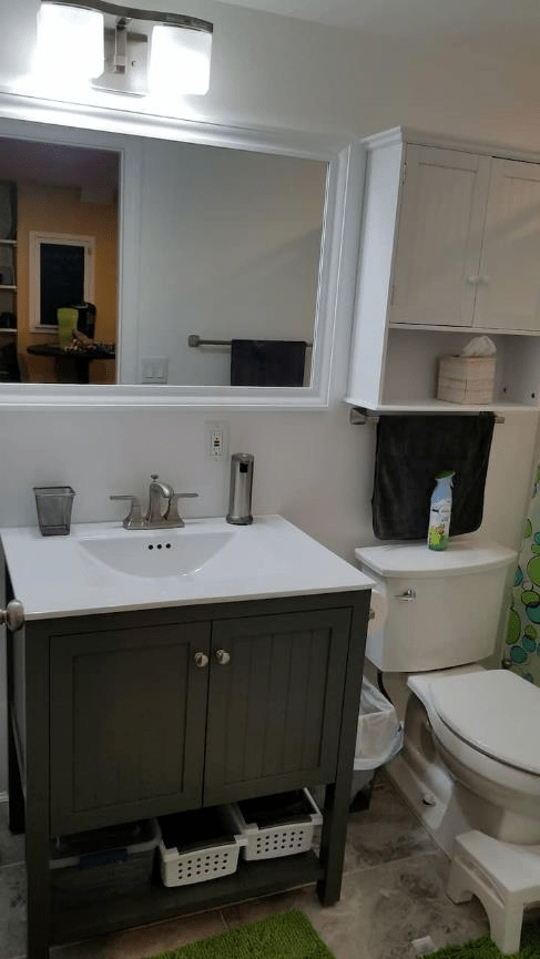 The bathroom is small but functional.