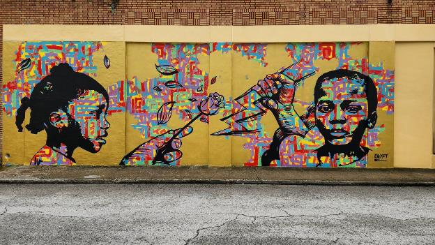 There are lots of nice wall murals in this neighborhood, here’s a few examples we saw as we walked.