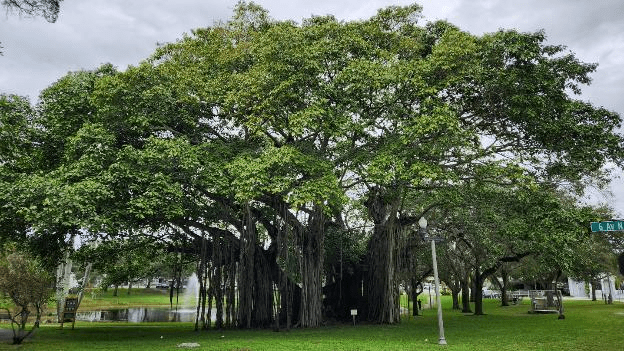It’s a very pretty little lake and there’s a large banyan tree. Those are always fun to see.