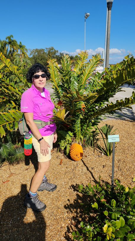 We walked by the Gizella Kopsick Palm Arboretum where I got this picture of Patti with an Encephalartos ferox.