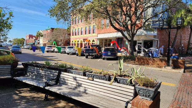 The nice women at the welcome center gave us plenty of advice and maps about how to spend our time on the island. The first thing we did was eat our picnic lunch on a bench along the Amelia River.