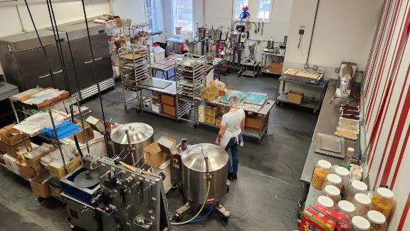 You can look down into their candy-making operation from a balcony. The smell from here was very nice and sugary.