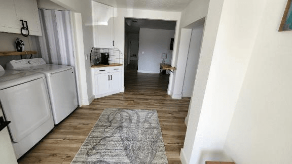 The front entryway is really roomy and that’s where the washer and dryer are.