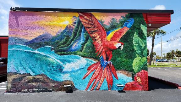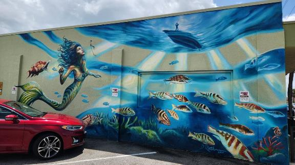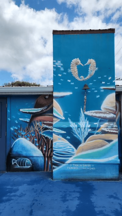 I think this is just a rental property but the artist did a really nice job with an undersea scene. The big sea turtle even spans a window.