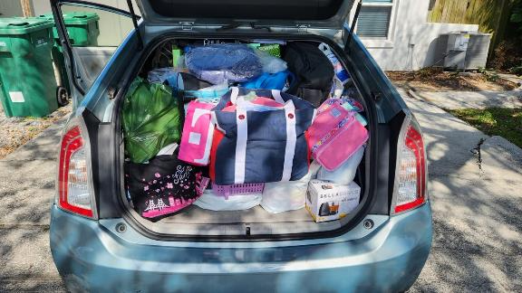 Here’s the car before we started to unload it. It was pretty much packed up to the ceiling with stuff.