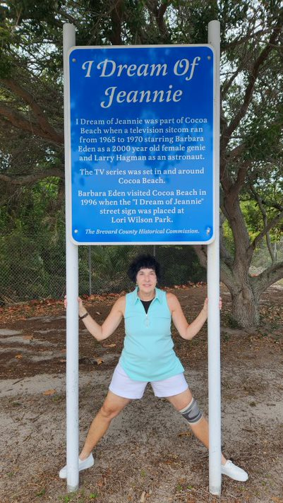After we cooled down and got dressed we drove around town a bit and went by I Dream Of Jeannie Lane. On the drive down here yesterday we had talked about how the 1960s sitcom “I Dream Of Jeannie” had been set in Cocoa Beach and Patti had found the street on the map.