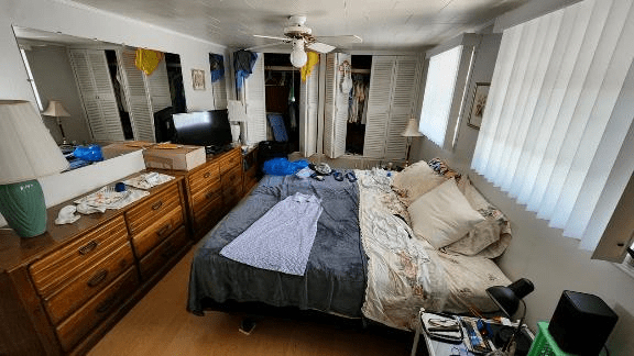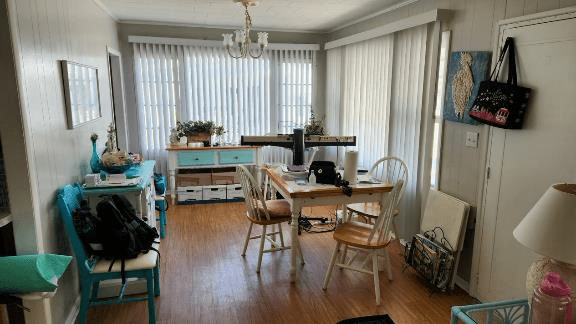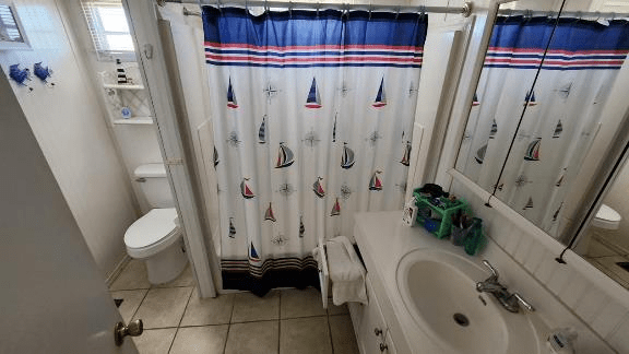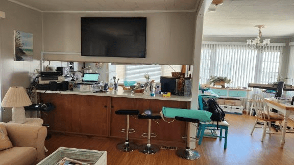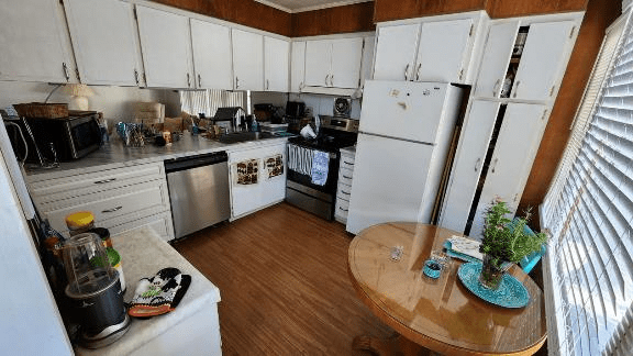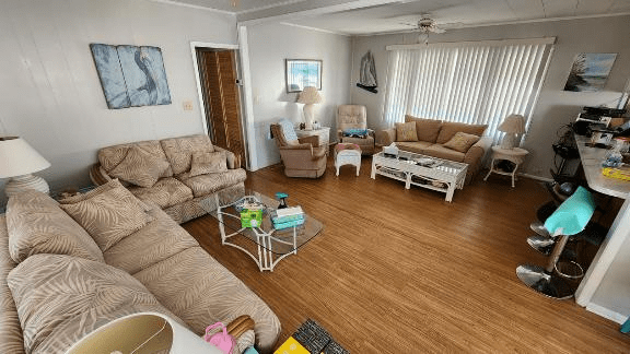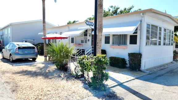 This is a two-bedroom two-bath mobile home in the Twin Shores Mobile Home Park on Longboat Key. We have 300 feet of private beach across the street and a private marina on Sarasota Bay. We’re paying $1,800 per month, which is the “out of season” price.