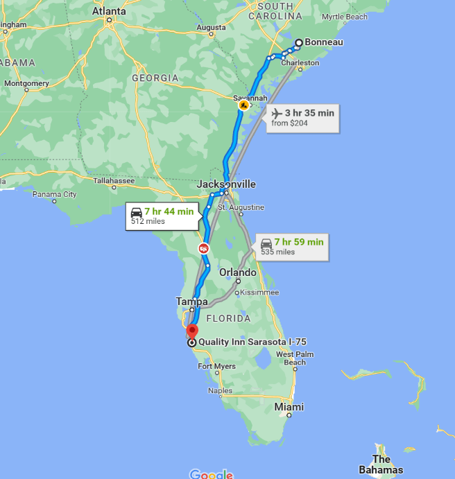 We were up early this morning because we had a long drive to Sarasota. It ended up taking us about 10 hours with stops for food, gas, and other necessities.