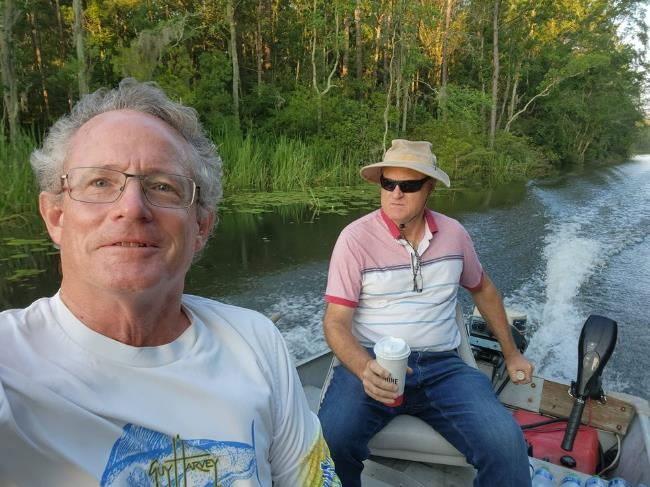 We stopped at Hardee’s for breakfast and Glen was holding his coffee and driving the boat.