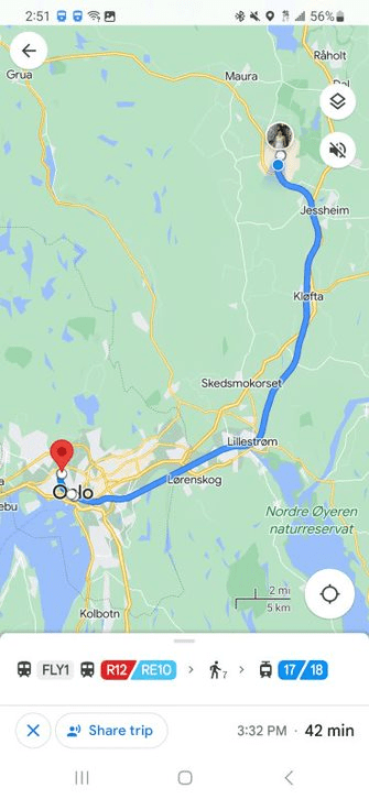 Google Maps is working well here so I was able to use it to map transportation options around the area and get a recommended route to our Airbnb.