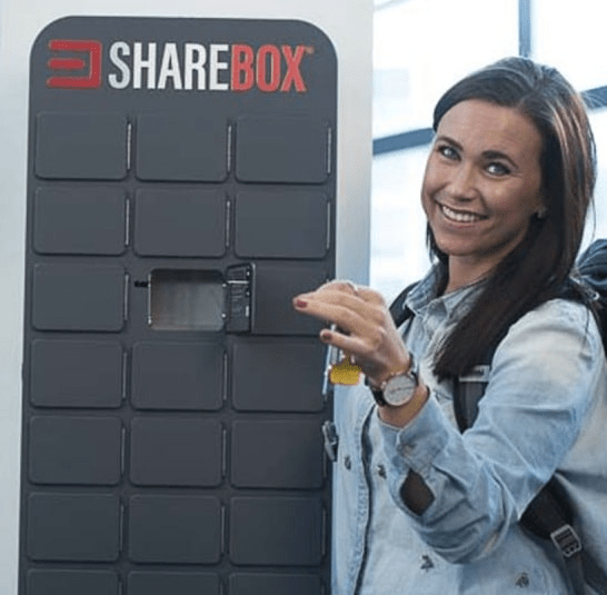 To get the keys for our Airbnb we went into the grocery store right next to the tram stop and I used the “ShareBox” app that I had downloaded onto my phone to open door #17 and retrieve our keys. That was interesting, there was a bank of small doors on the wall and when I pressed the “open” button on the app on my phone our door sprang open. Here’s a picture from their website of a woman doing that. It’s a way to share keys with various people.