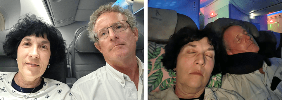 We had about 3 hours to wait so we got food and I watched people. By 10PM we were on the plane. Patti likes to take pictures of us sleeping (not sure how she does this while asleep).