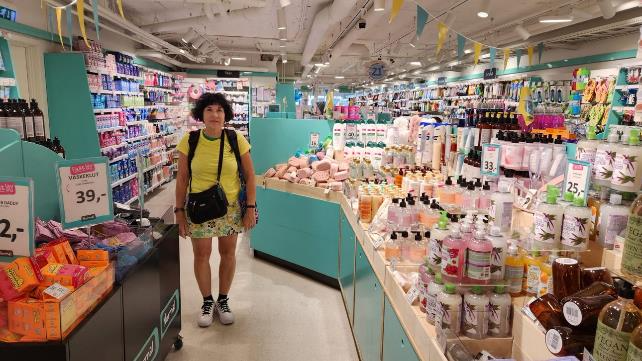 And here she is in a drug store / pharmacy.