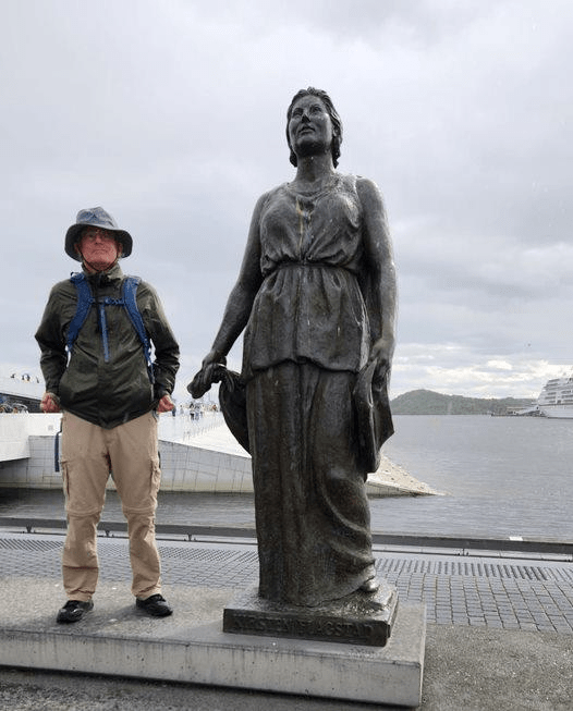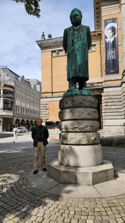 Here I am with Henrik Ibsen, a famous Norwegian playwright.