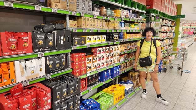 While still in our neighborhood we checked out some local grocery stores and pharmacies. Here’s Patti in one of the coffee aisles.