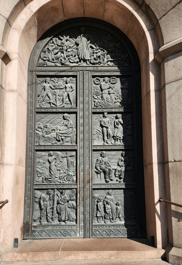 We walked by the Oslo Cathedral which has a nice front door with scenes from the bible in bronze.