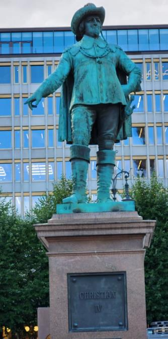 “Christian IV (12 April 1577 – 28 February 1648) was King of Denmark and Norway and Duke of Holstein and Schleswig from 1588 until his death in 1648. His reign of 59 years, 330 days is the longest of Danish monarchs and Scandinavian monarchies. A member of the House of Oldenburg, Christian began his personal rule of Denmark in 1596 at the age of 19. He is remembered as one of the most popular, ambitious, and proactive Danish kings, having initiated many reforms and projects. Christian IV obtained for his kingdom a level of stability and wealth that was virtually unmatched elsewhere in Europe. He engaged Denmark in numerous wars, most notably the Thirty Years’ War (1618–1648), which devastated much of Germany, undermined the Danish economy, and cost Denmark some of its conquered territories. He rebuilt and renamed the Norwegian capital Oslo as Christiania after himself, a name used until 1925.”