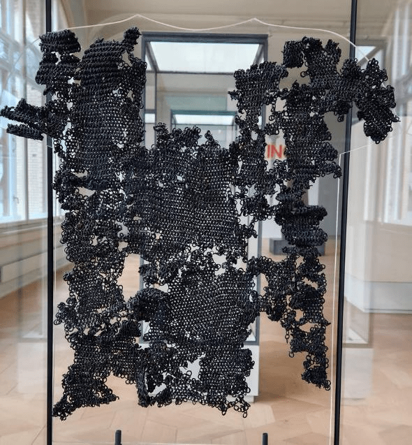 This chain mail would have been very expensive and probably took 6 months to make. It’s dated to the latter half of the 900s and about 25,000 rings survive. This type of armor was reserved for professional warriors and other elites in the Viking age.