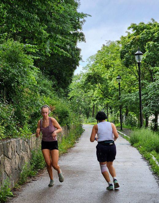 We had decided to take the day off today and catch up on some things, but first we went for a jog at the nearby St. Hanshaugen Park. We like to stay in some kind of physical shape so we try to exercise when we can. Here’s Patti jogging in the park and passing a Norwegian woman. Patti is on the right.