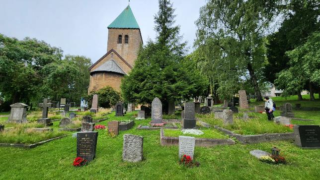 “Old Aker Church (Norwegian: Gamle Aker kirke) is a medieval era church located in Oslo, Norway. An active parish, the church is the oldest existing building in Oslo. The church is surrounded by Old Aker Cemetery. Old Aker Church was built as a three-naved Romanesque style basilica and constructed from limestone. It is believed to have been erected by King Olav Kyrre in 1080 as a church for all of Vingulmark, the historic area surrounding Oslo. The grounds of Old Aker Church were originally likely the former site of the regional thing during the pre-Christian period.”