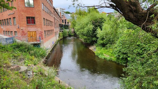 We soon got to the Akerselva, a river that was once the dividing line between town and country. It has always been the main conduit for sewage and industrial waste in Oslo. That’s not exactly a huge plus but I’ve read that every city back then had to use a river for sewage and waste, they had to get rid of if somehow and couldn’t think of anything else to do with it. Industry grew up around the river, since it was industry that needed the river for power for production and as a place to dispose of the waste. There has been production around Akerselva for 1,000 years, up until the 1980s.