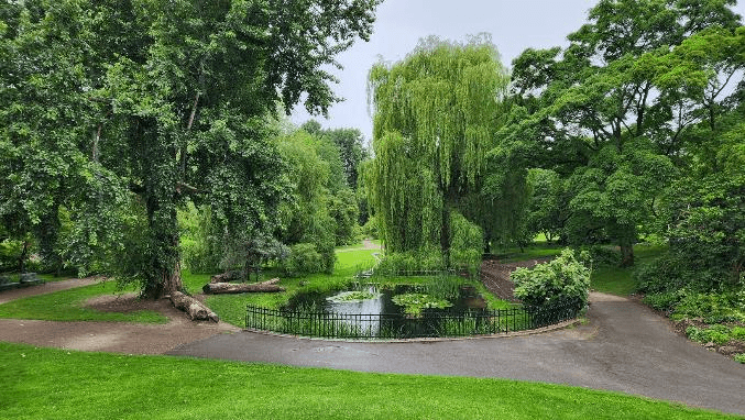 This lily pond with a willow tree was very pretty.