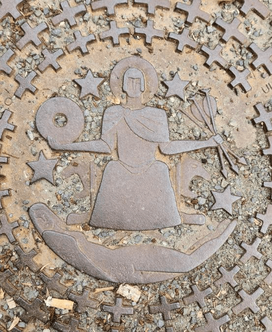Continuing our walk we passed by manhole covers with this logo on them.