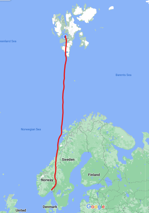 Our flight path was almost due north from Oslo to the archipelago of Svalbard and the town of Longyearbyen.