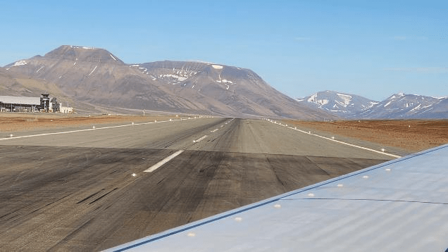 Longyearbyen airport only has one runway, and no taxiways. Our plane came to a stop near the end of the runway then made a U-turn and taxied back to the entry gate. I got this picture of the runway as the plane turned.