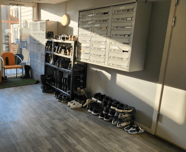 In the lobby you take off your boots, there are lots of racks to keep boots on. We decided to take our boots up to the apartment with us rather than leave them in the lobby area.