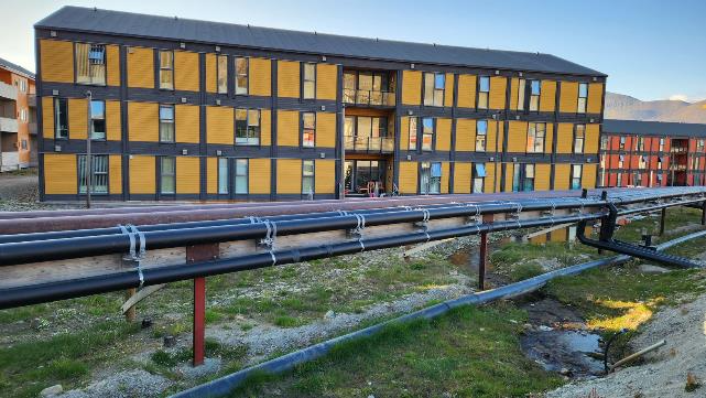 The utilities piping runs between our building and the road. We crossed a wooden bridge over the pipelines and pulled our bags down the gravel walkway to the front door. Longyearbyen could be considered a bit rugged. Good thing we were traveling in our hiking boots!