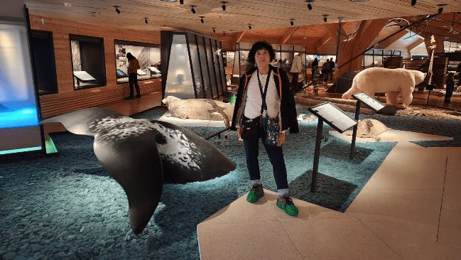 The Lonely Planet tour guide for Norway recommended The Svalbard Museum so we decided to do it after lunch today. We walked down main street to the museum and paid our 150 Kroner each ($15) which I thought was a bit pricey. We put covers on our boots and put our backpacks in lockers.