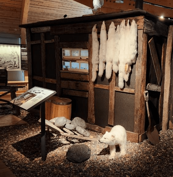 This was a model of a trapper’s hut, you can see the arctic fox skins hanging on the wall and a young polar bear.