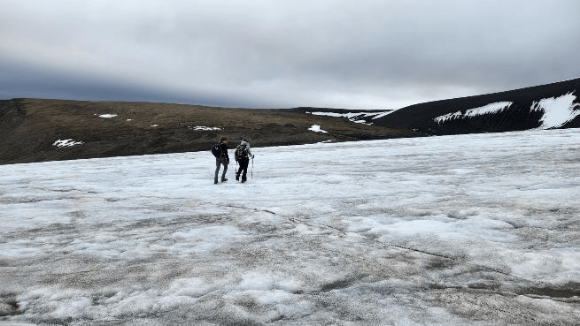 It wasn’t very slippery on the glacier, it mostly had a thin covering of snow that was melting and becoming crumbly.