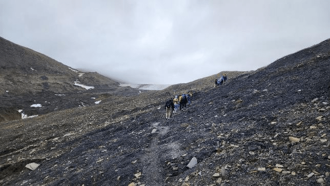 After the peak we descended to an area next to the glacier to have lunch. Here is our lunch site.
