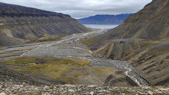 As we climbed we had a nice view of Longyearbyen. You can see how the town in is a valley that leads out to the fjord.