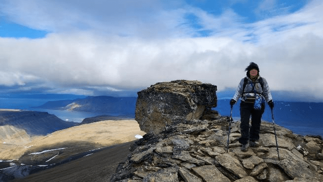 After the glacier we walked up a final slope to get to Troll Rock. Here’s Patti walking up the slope.