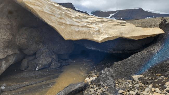Here the stream was flowing under the edge of the glacier.