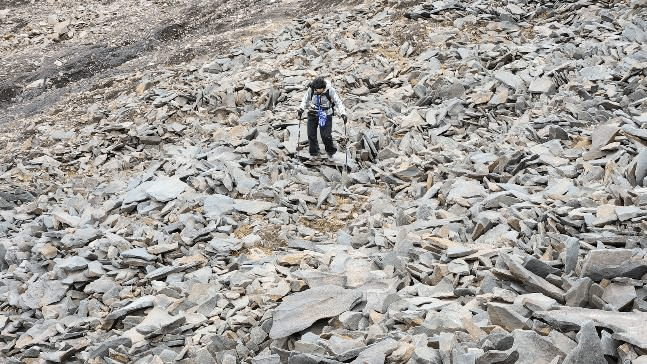 We went back across the rock field.