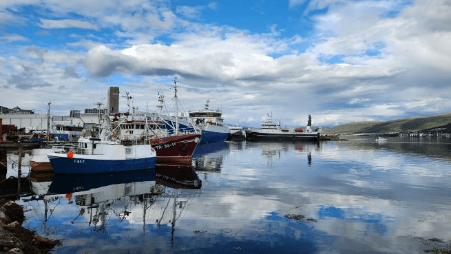 On the way we went by this pretty harbor where I was interested to see the research vessel “Helmer Hansen” which is the far-right vessel in this picture.