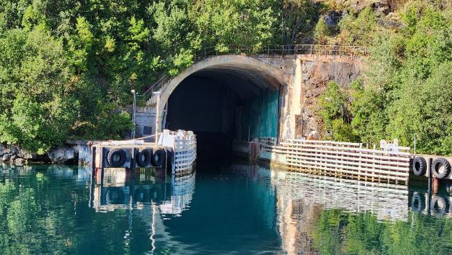“During the Cold War, Norway wanted a secret naval base within the Arctic Circle. The base was essentially carved into a mountain just outside the city of Tromsø. It is a massive complex constructed at a cost of 4 billion Kroner burrowed into a mountain. It lost its status as an Orlogsstasjon (navy base) in 2002 and was consequently closed down in 2009 by the government of Jens Stoltenberg. The base has an inside surface of 25,000 square metres (270,000 sq ft) beneath 274 metres (899 ft) of hard rock, including 13,000 square metres (140,000 sq ft) of housing, and 3,000 square metres (32,000 sq ft) of deep-water dock. In one of the mountain halls, there is a dry dock for submarines. The internal dry dock is capable of accommodating 6 submarines simultaneously. The base further consists of a 340-metre-long (1,120 ft) dry dock, workshops, offices and ammunition depots. The base also has external docks capable of accommodating larger ships, among other US Navy SSN’s and SSBN’s. The entrance to the facilities consist of a tunnel that is more than 900 metres (3,000 ft) long.”