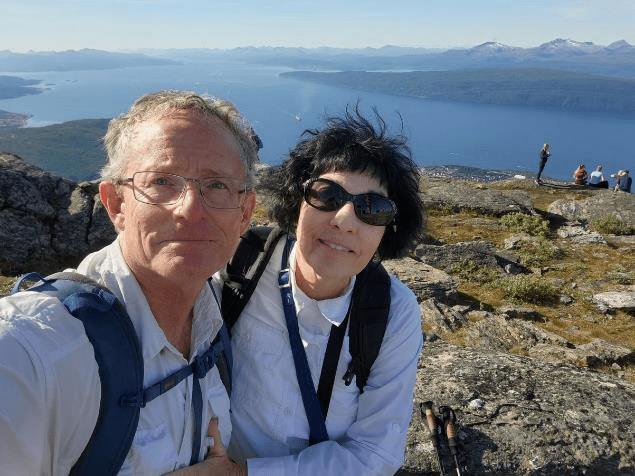 At the summit we got our selfie with the fjord. We both had on white shirts today.