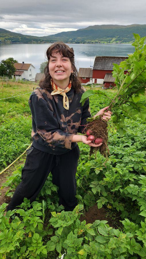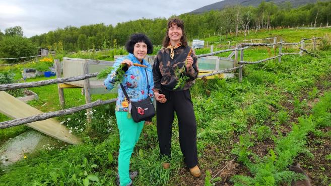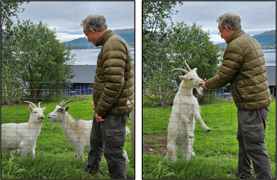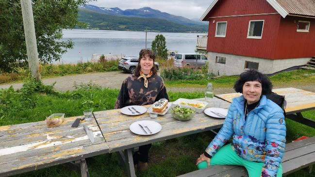 We drove about an hour and got to the farm where Patti’s niece, Callie, has been working as a WWOOFer (Worldwide Opportunities on Organic Farms) — I wrote about her in an earlier post. Earlier this week, we made plans with Callie to stop by to see her on our way to Narvik, and to get a tour of the farm and eat lunch.
